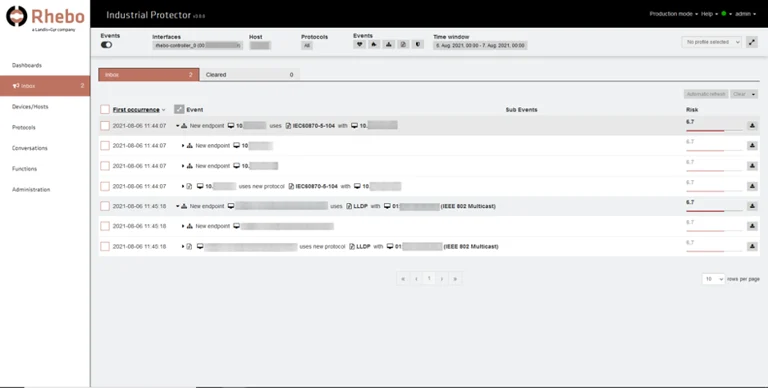 Fig. 3: There is no such thing as 100% security in OT, which is why security officers should always be aware of security-related communication in the OT network, as seen here with the Rhebo Industrial Protector inbox.